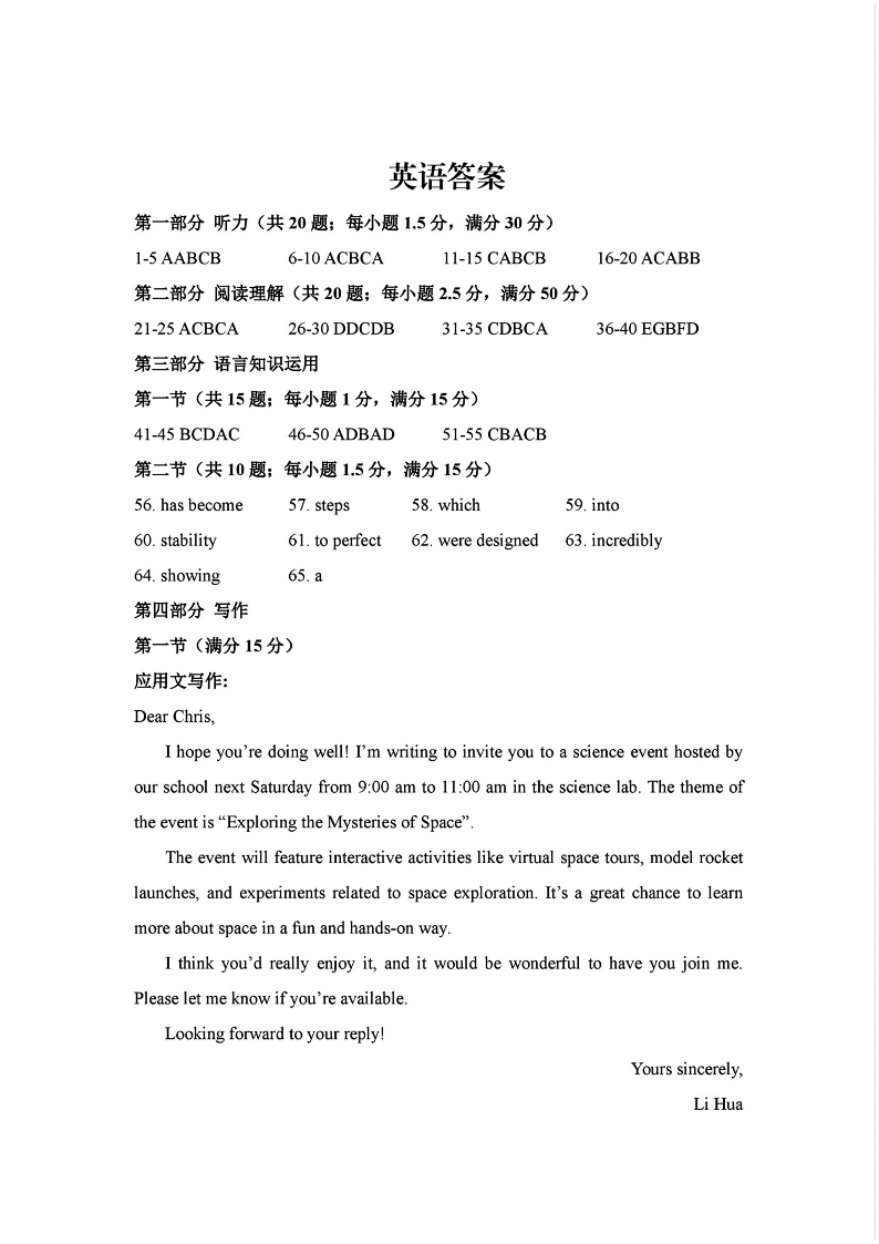 江西省赣州市2024-2025学年下学期高三期中联考英语答案