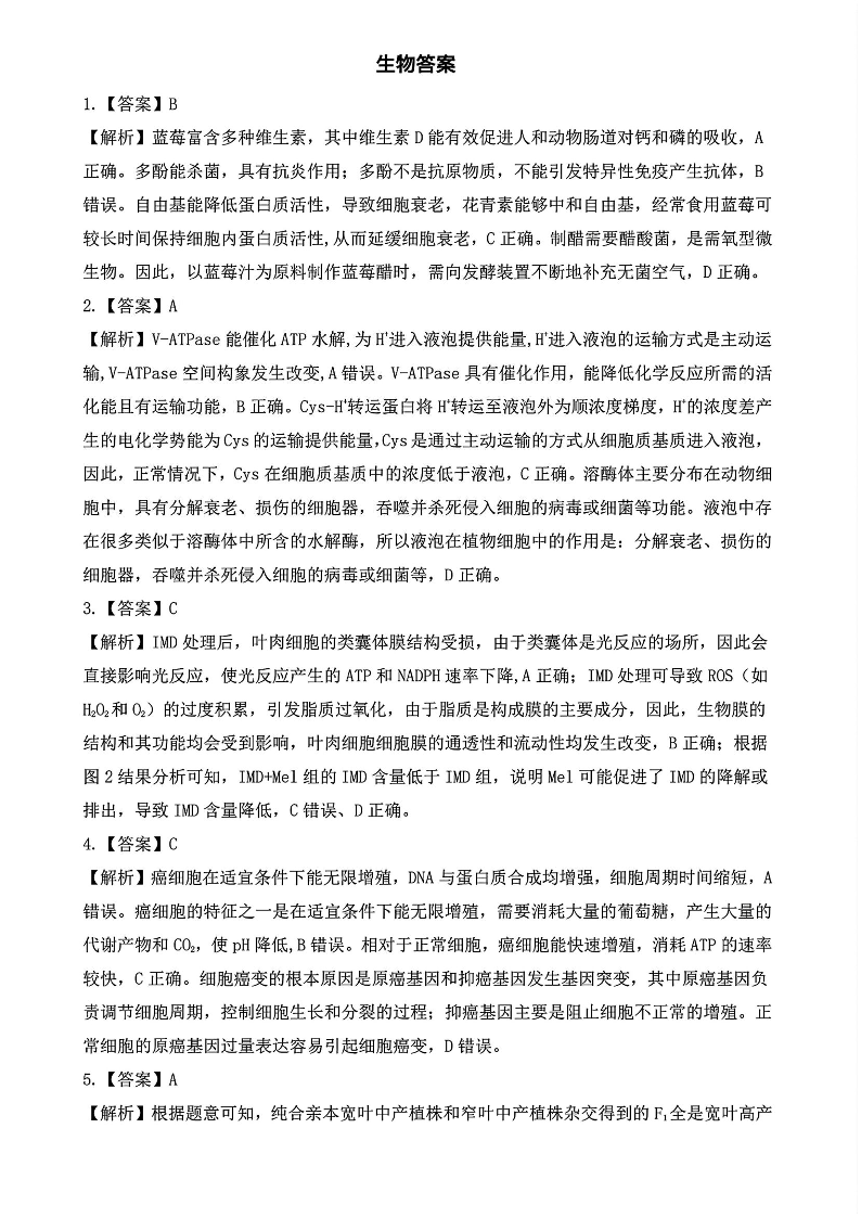 江西省赣州市2024-2025学年下学期高三期中联考生物答案