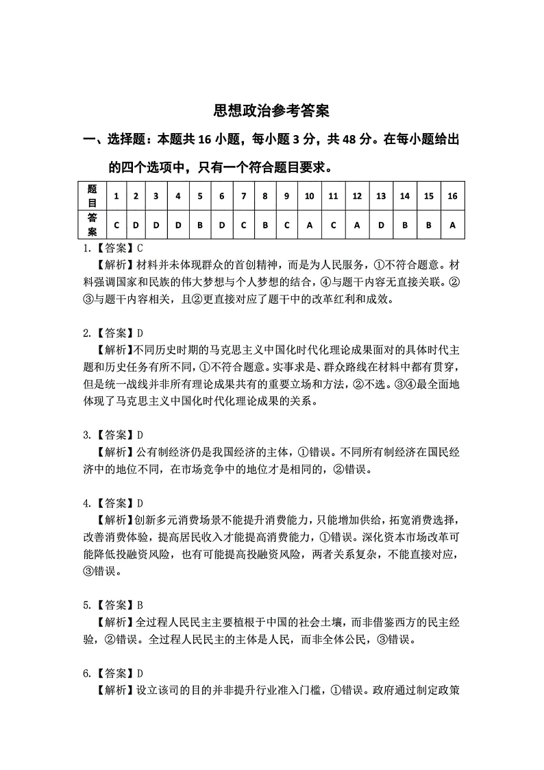 江西省赣州市2024-2025学年下学期高三期中联考政治答案
