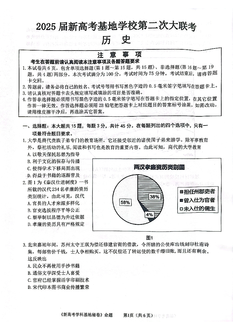 江苏省新高考基地学校2024-2025学年下学期高三联考二历史+答案