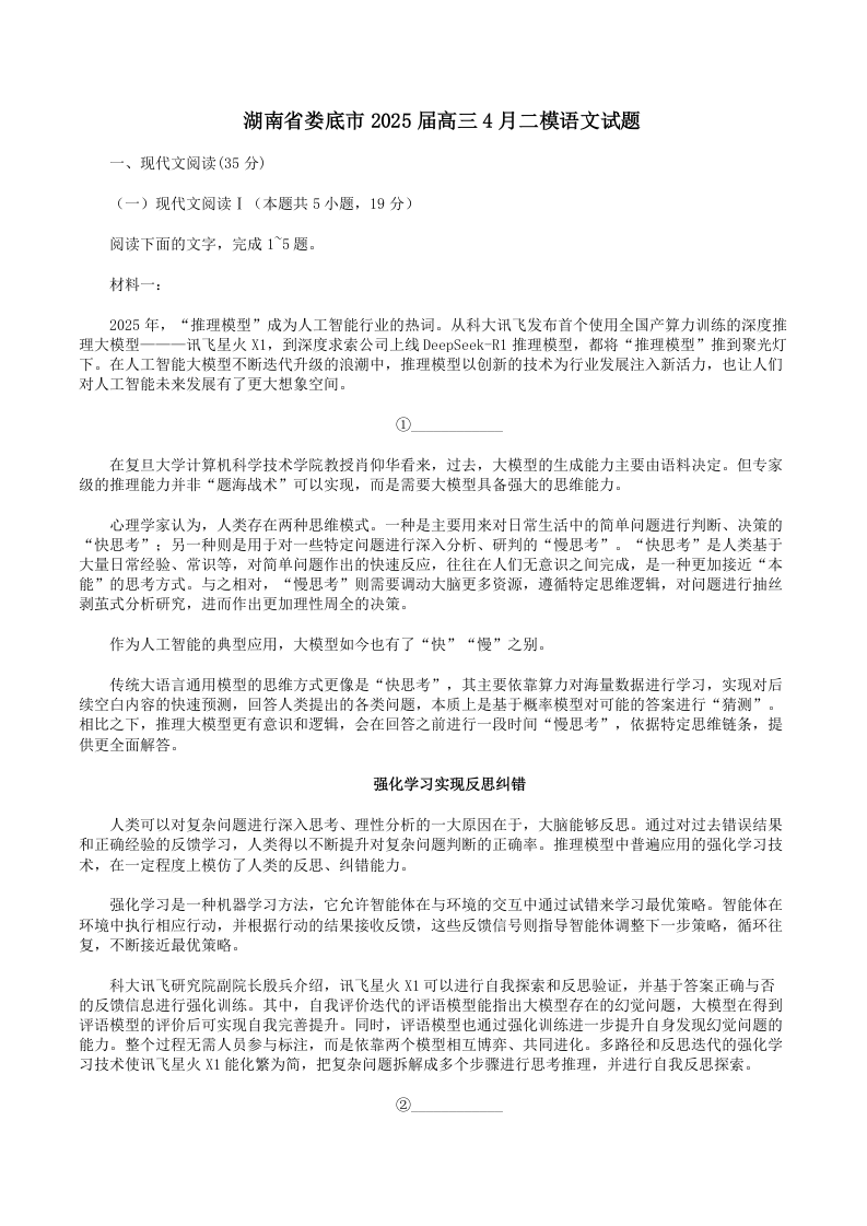 湖南省娄底市2024-2025学年下学期4月高三二模联考语文+答案