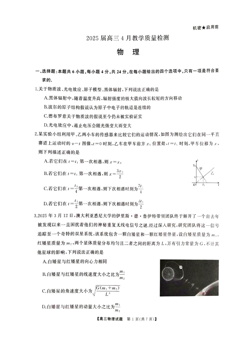 湖南省娄底市2024-2025学年下学期4月高三二模联考物理+答案