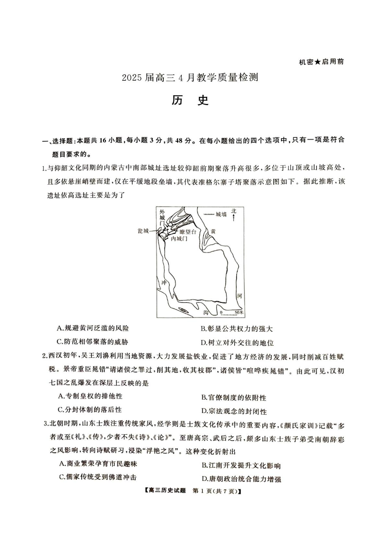 湖南省娄底市2024-2025学年下学期4月高三二模联考历史+答案