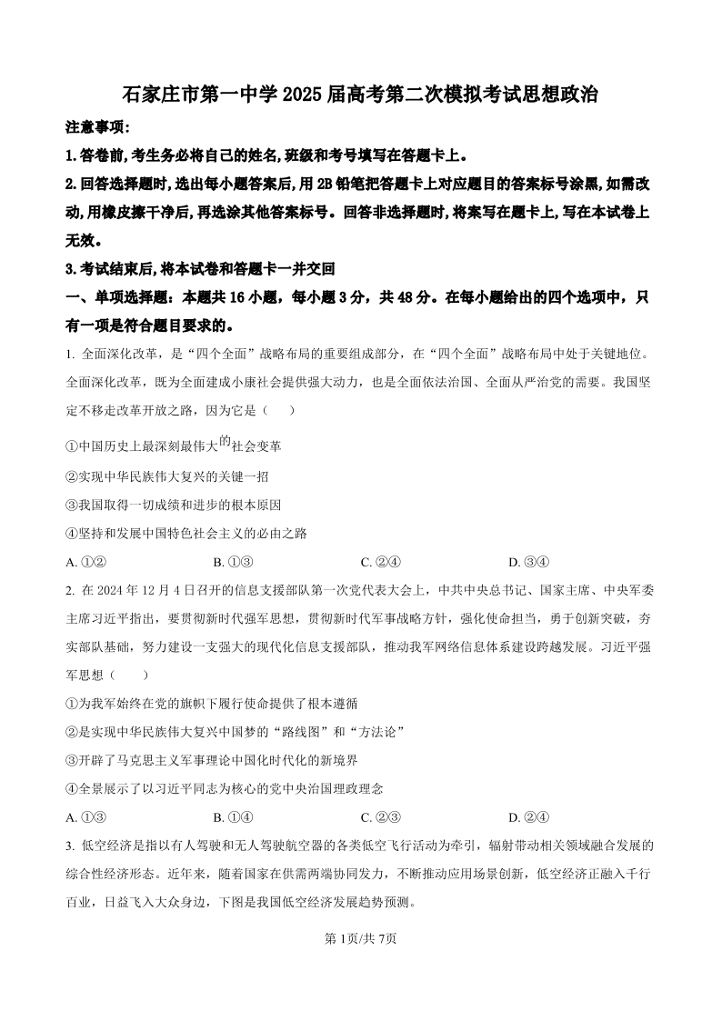 河北省石家庄市一中2024-2025学年下学期高三第二次模拟政治