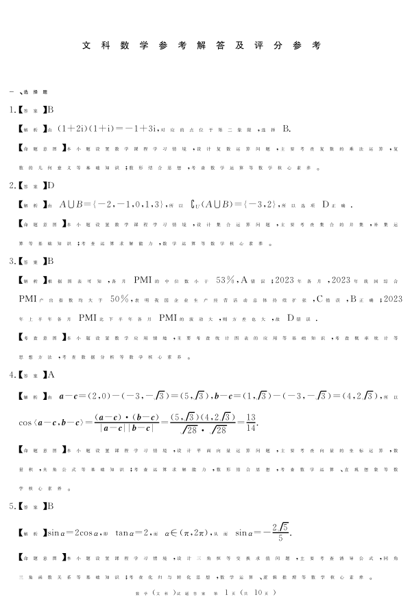 四川省眉山市2024届高三下学期第三次诊断考试文科数学答案