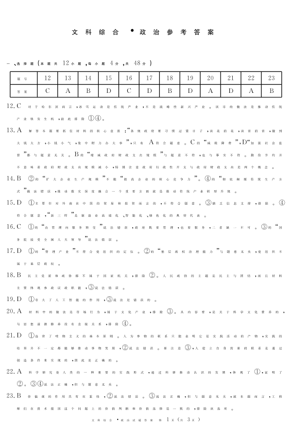 四川省眉山市2024届高三下学期第三次诊断考试政治答案