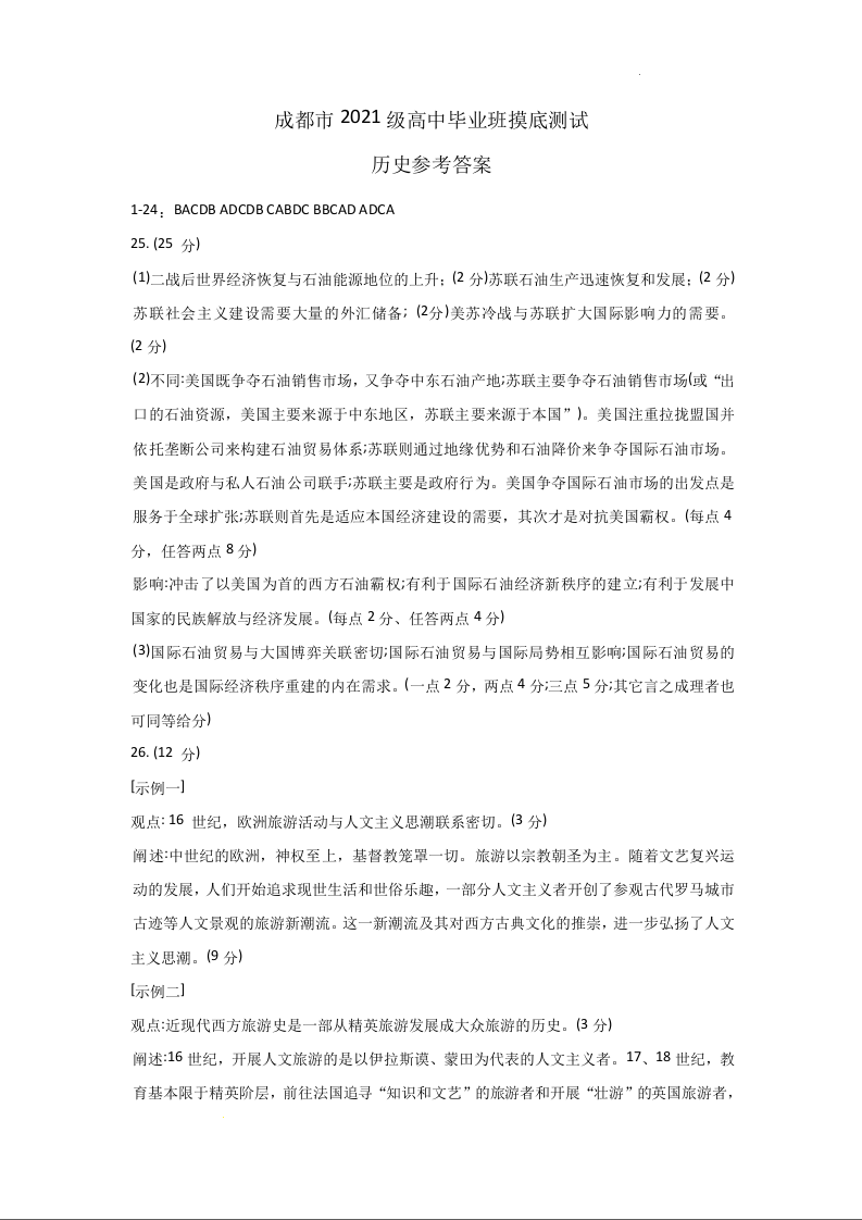 四川省成都市2024届下学期期末零诊测试历史答案