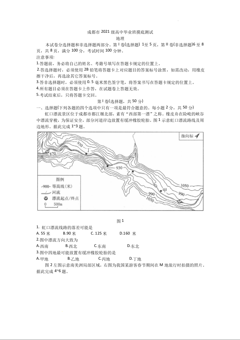 四川省成都市2024届下学期期末零诊测试地理