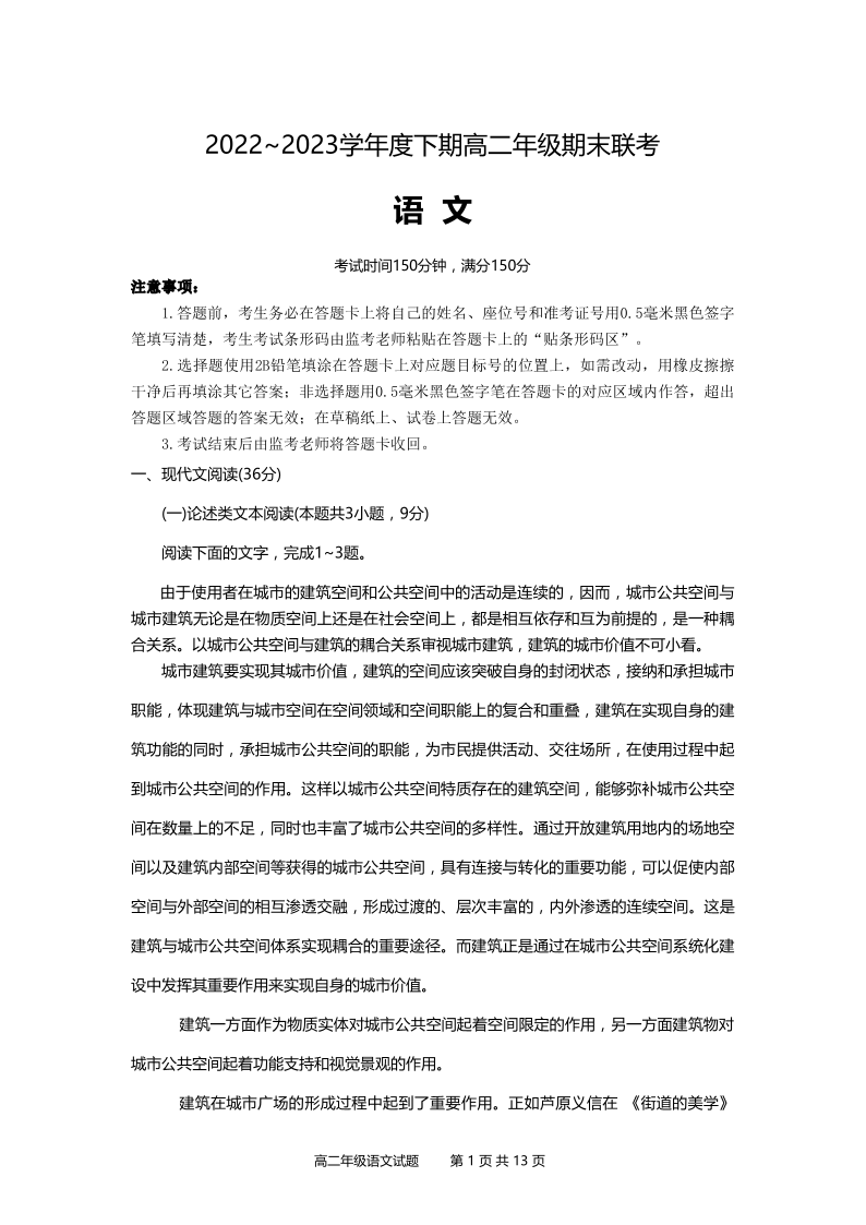 四川省成都市蓉城联盟2024届下学期期末联考语文