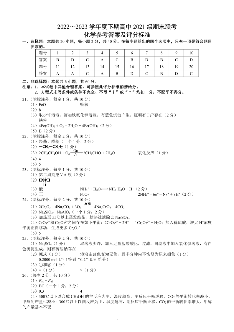 四川省成都市蓉城联盟2024届下学期期末联考化学答案