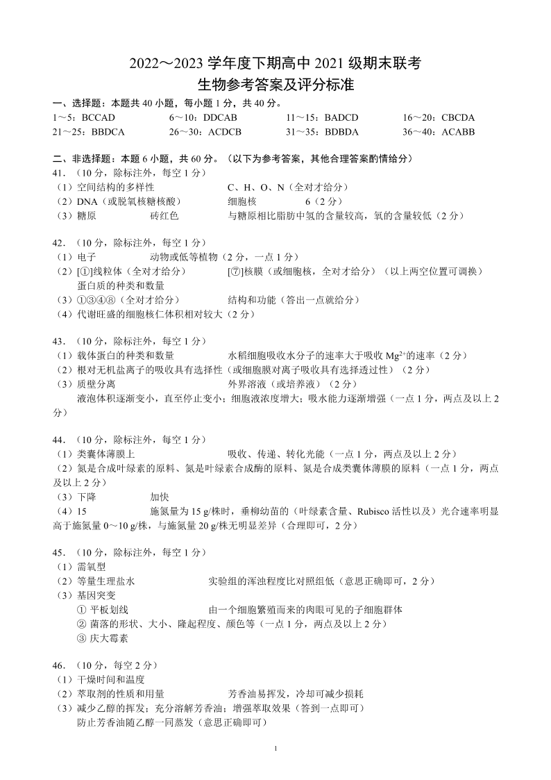 四川省成都市蓉城联盟2024届下学期期末联考生物答案