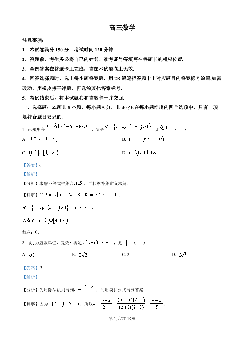 广东省清远市2025届普通高中毕业年级教学质量检测(二)(清远二模)数学(精品解析版)