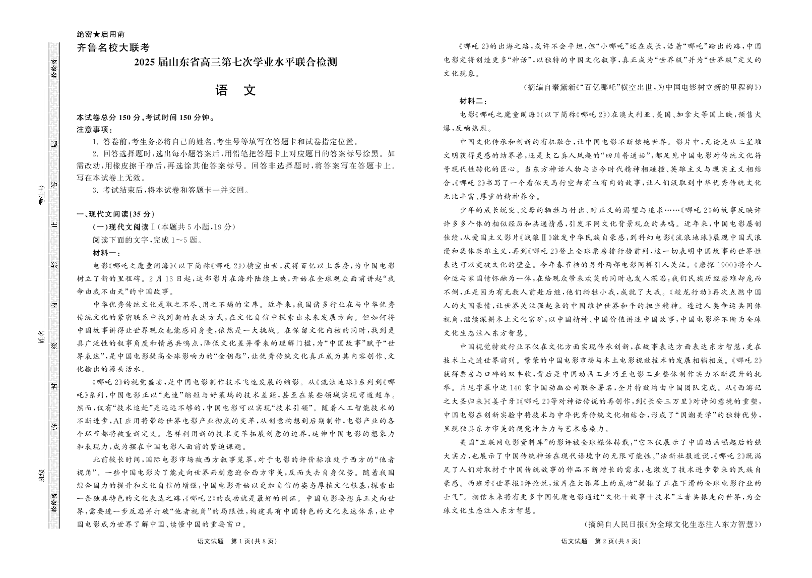 山东省齐鲁名校大联考2025届高三第七次学业水平联合检测语文
