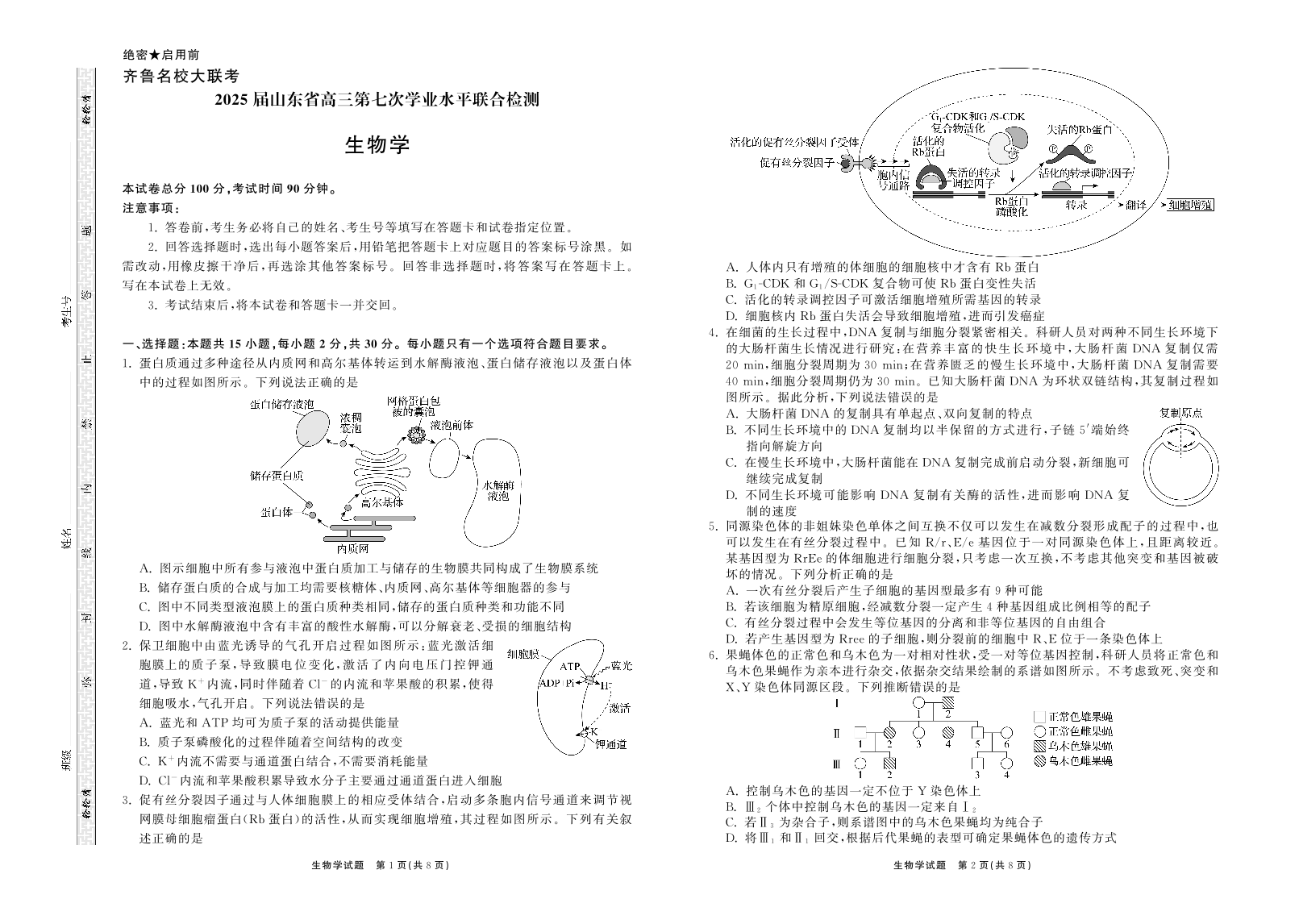 山东省齐鲁名校大联考2025届高三第七次学业水平联合检测生物