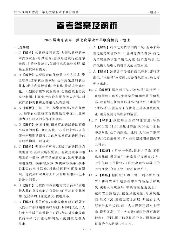 山东省齐鲁名校大联考2025届高三第七次学业水平联合检测地理答案