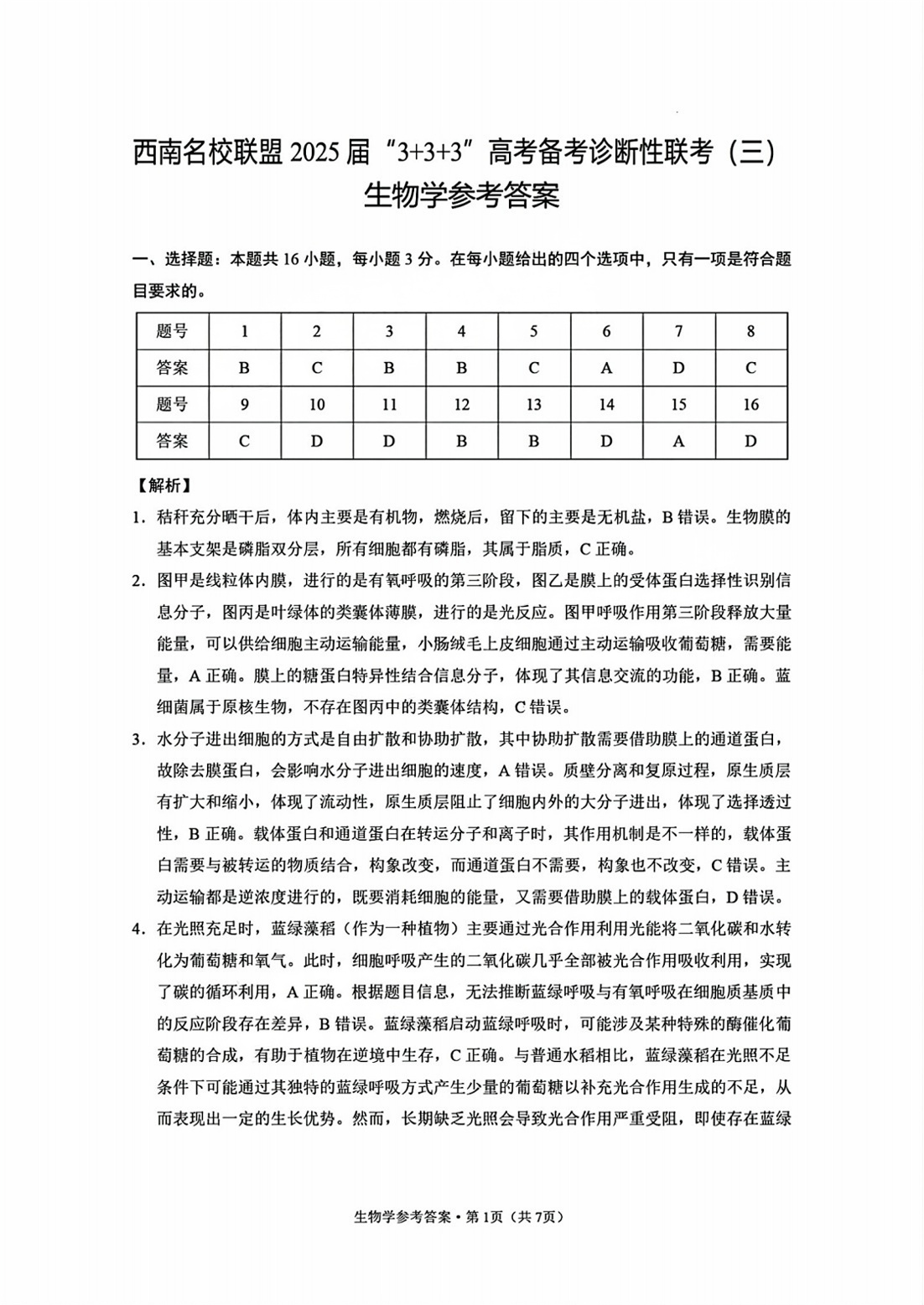 西南名校联盟2025届高三下学期“3+3+3”高考备考诊断性联考(三)生物答案