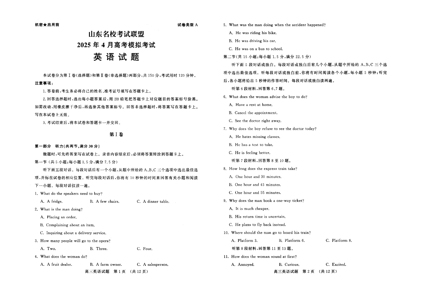 山东省名校考试联盟2024-2025学年学期4月高三模拟考试英语