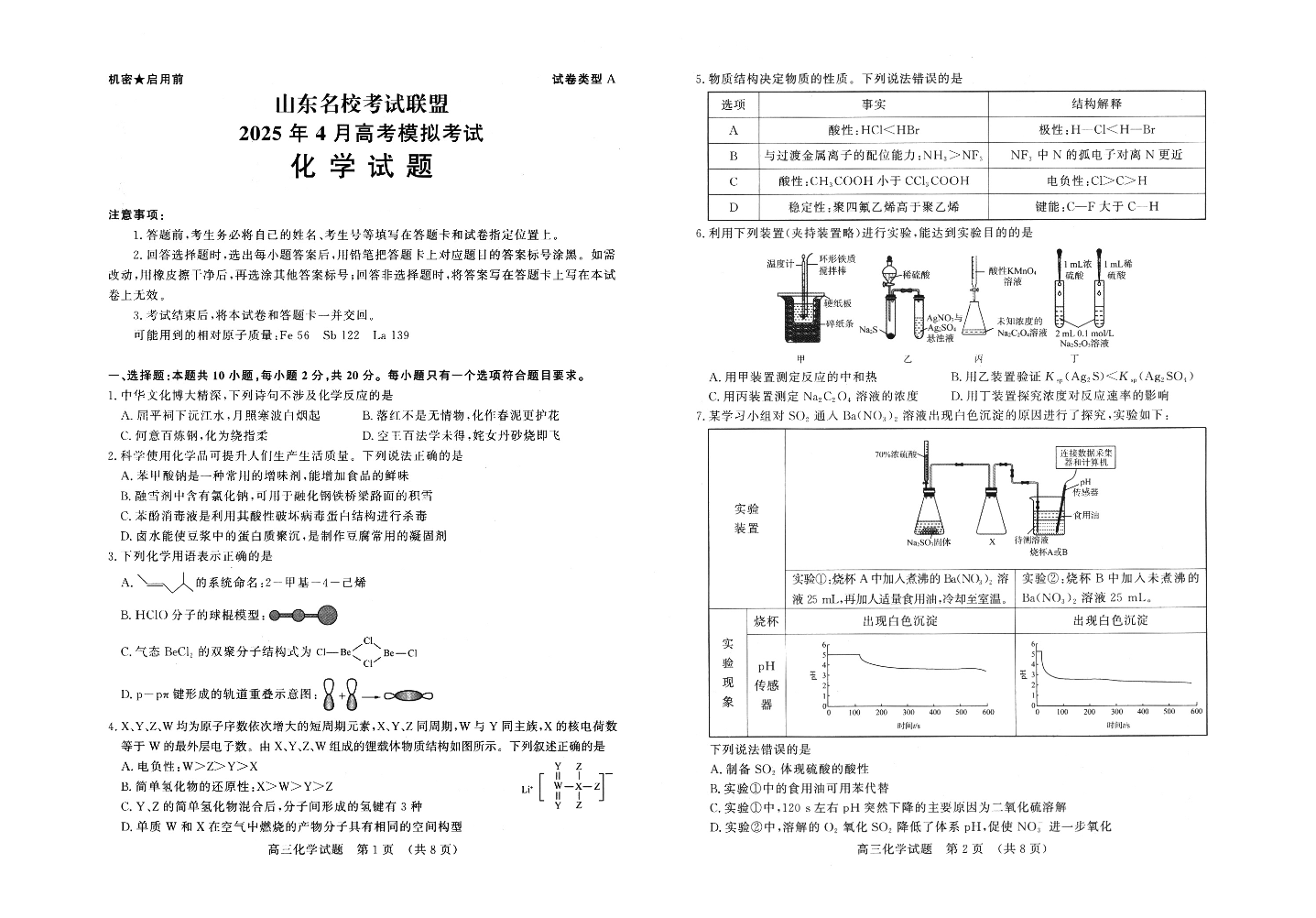 山东省名校考试联盟2024-2025学年学期4月高三模拟考试化学