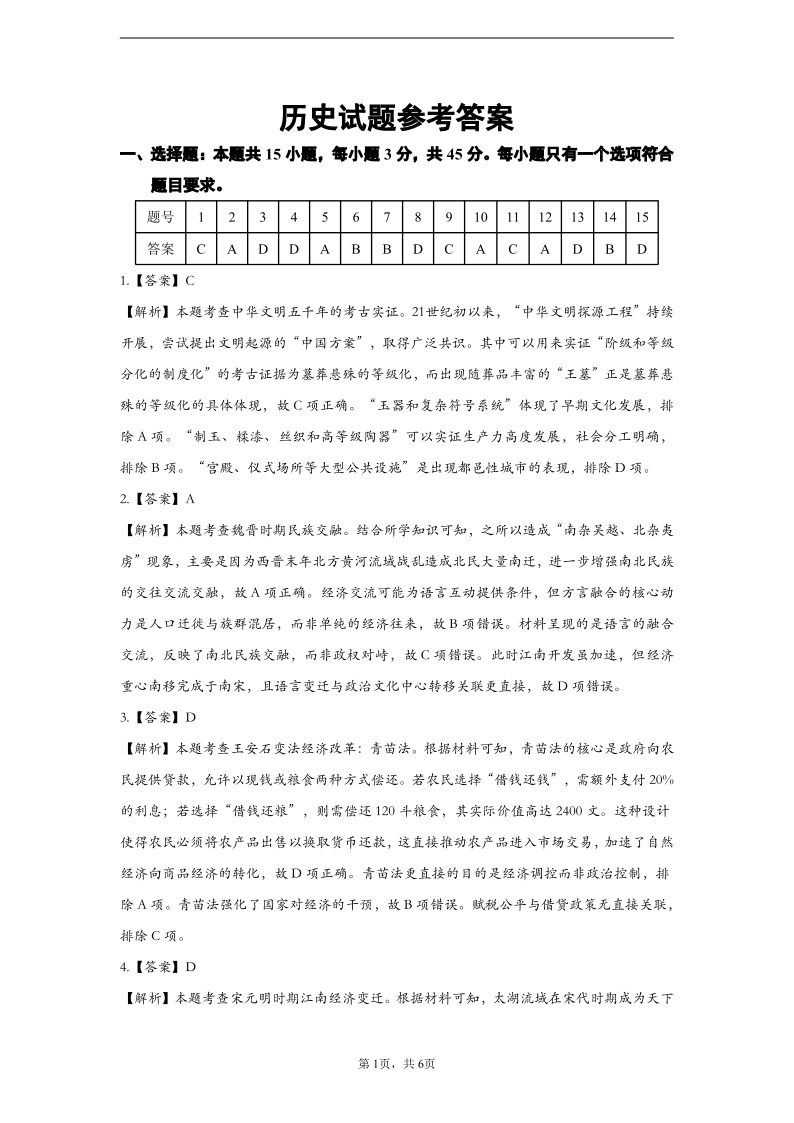 山东省名校考试联盟2024-2025学年学期4月高三模拟考试历史答案
