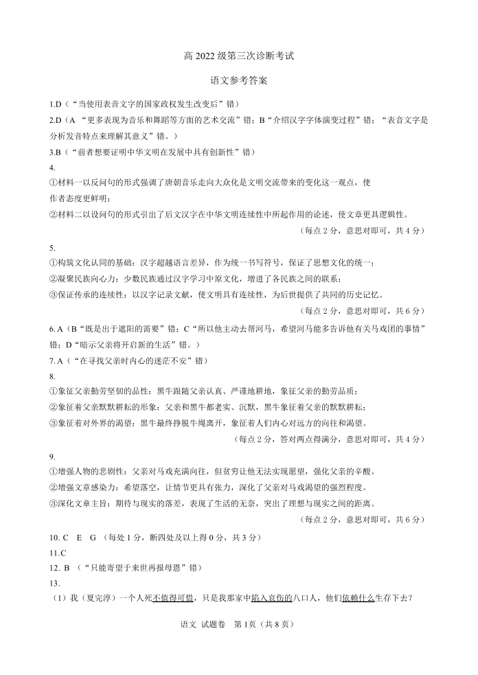 四川省遂宁市2024-2025学年下学期高三第三次诊断性测试语文答案