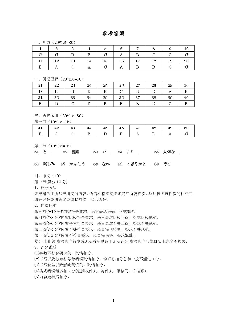 云南省红河、文山、普洱、临沧四市州2024-2025学年高三三模日语答案