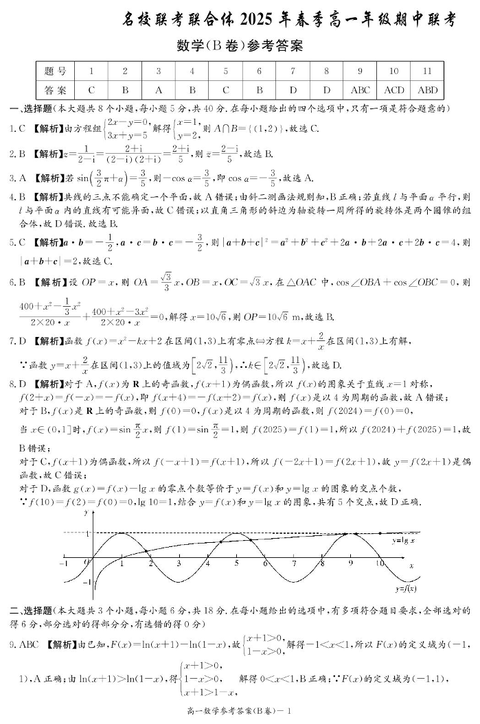 湖南省名校联考联合体2024-2025学年下学期高一期中考试数学B答案