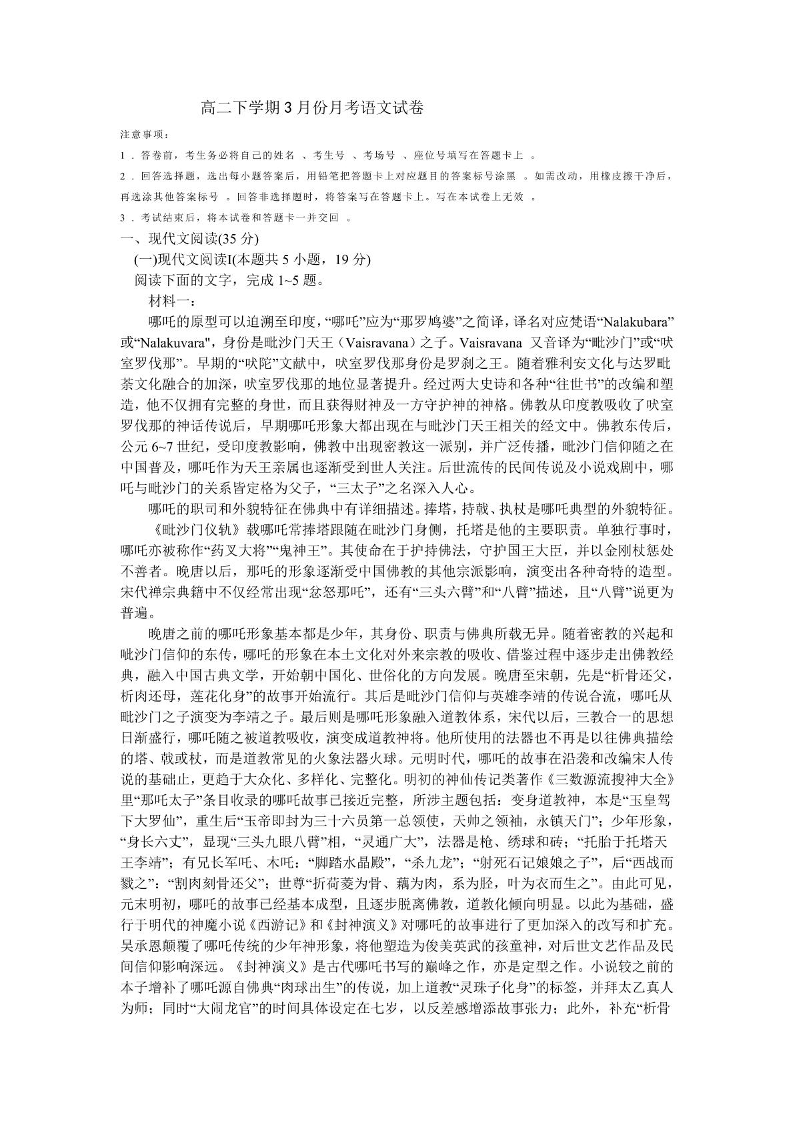 安徽省阜阳市、亳州市部分学校2024-2025学年下学期3月高二月考语文