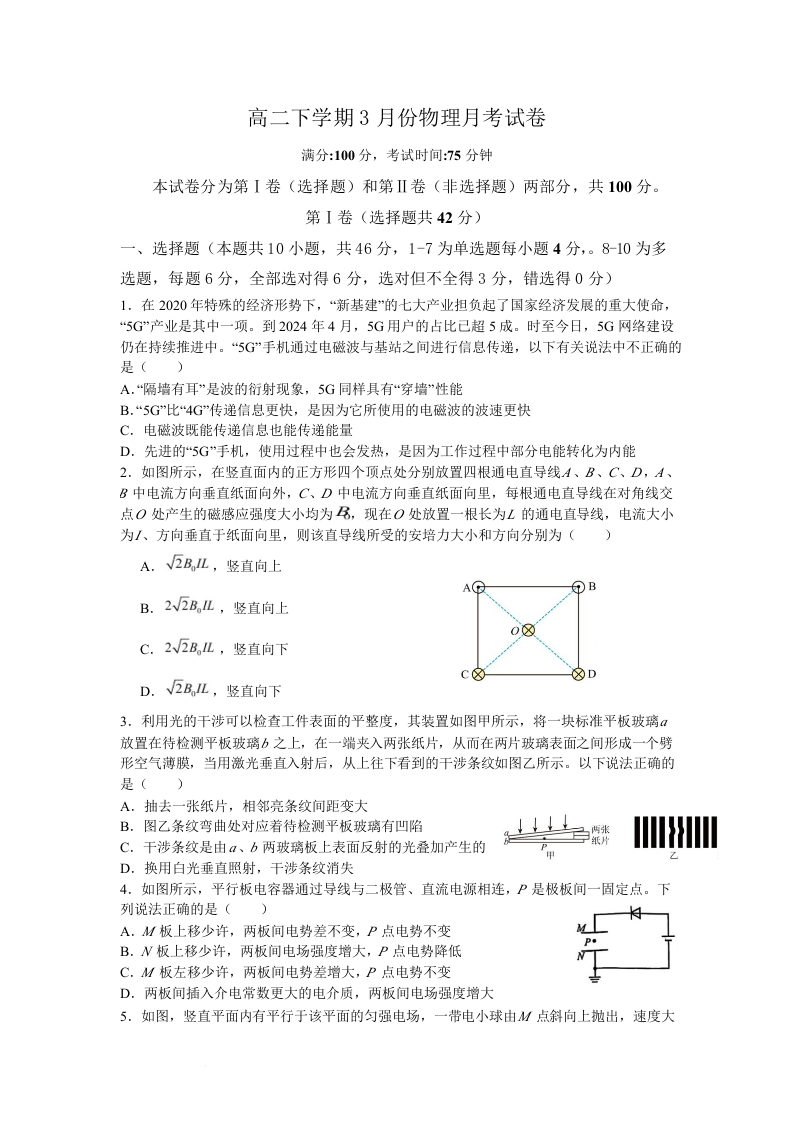 安徽省阜阳市、亳州市部分学校2024-2025学年下学期3月高二月考物理+答案