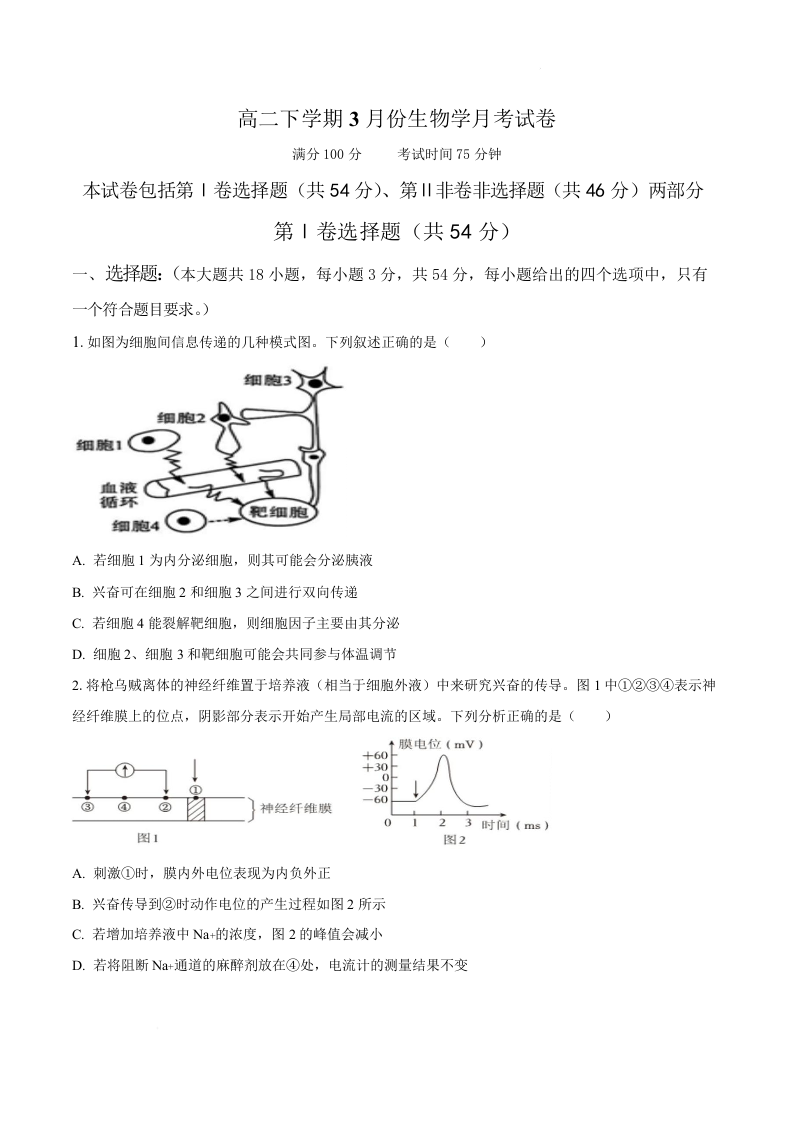安徽省阜阳市、亳州市部分学校2024-2025学年下学期3月高二月考生物+答案