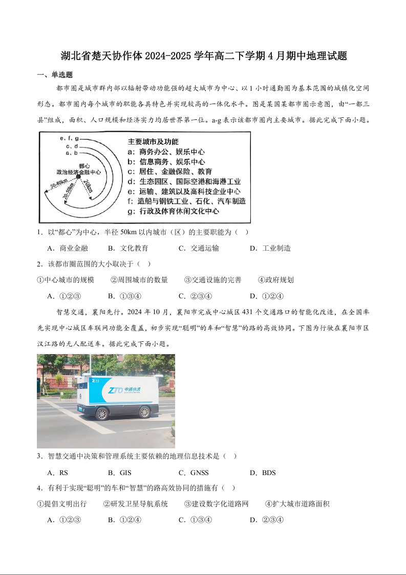 湖北省楚天协作体2024-2025学年下学期4月高二期中联考地理+答案