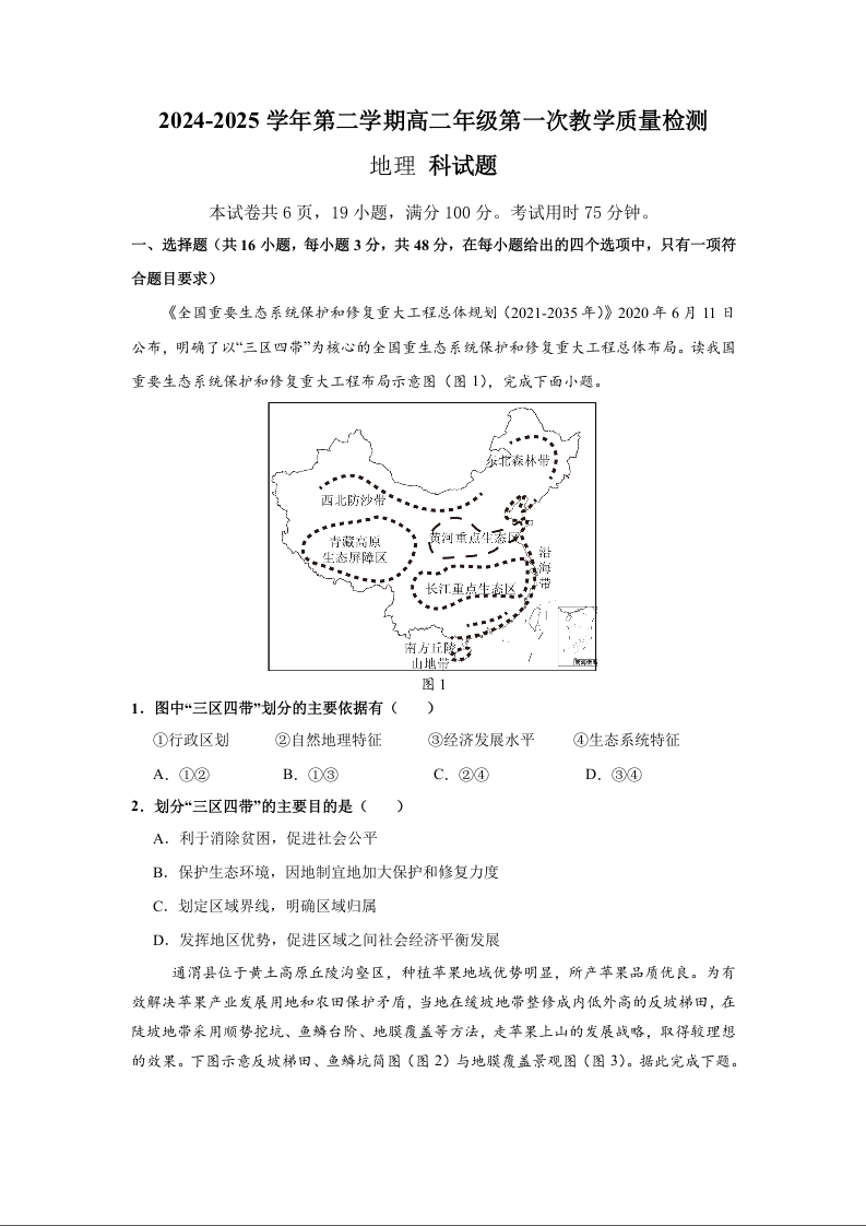 广东省三市三校2024-2025学年下学期高二第一次教学质量检测地理