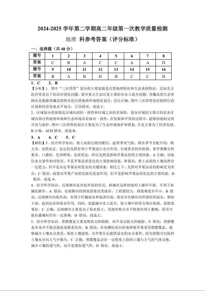 广东省三市三校2024-2025学年下学期高二第一次教学质量检测地理答案