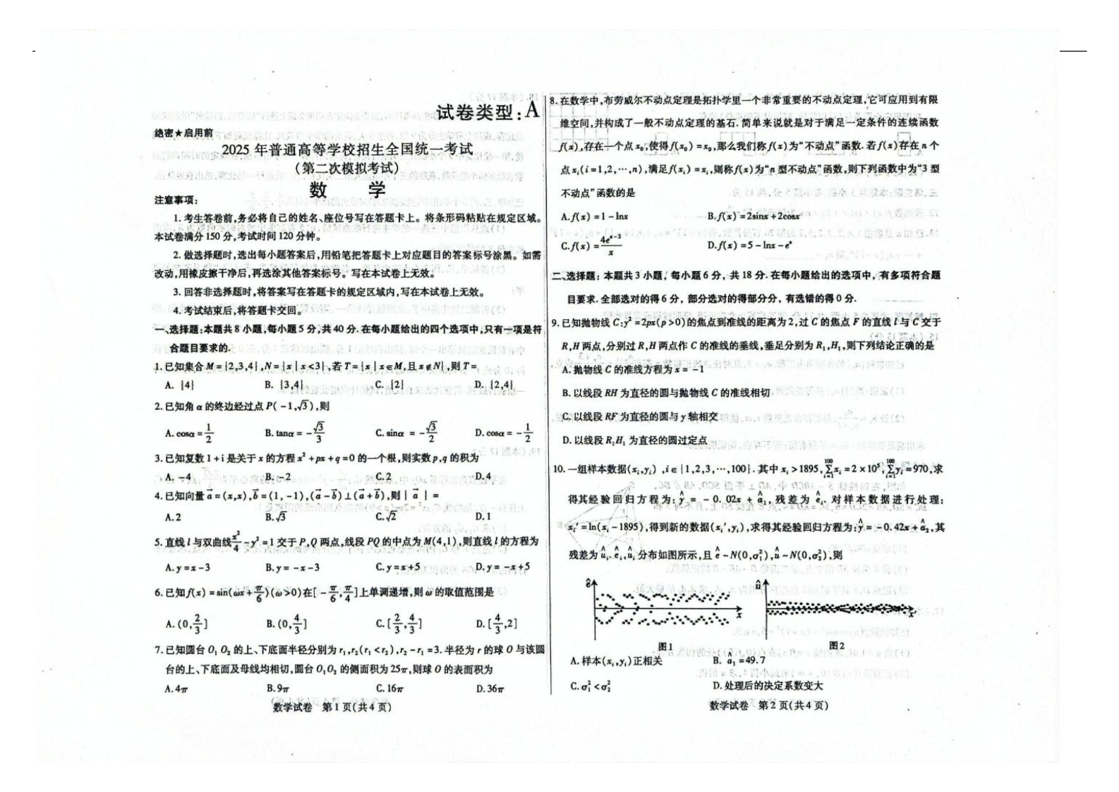 内蒙古包头市2024-2025下学期4月高三二模数学+答案