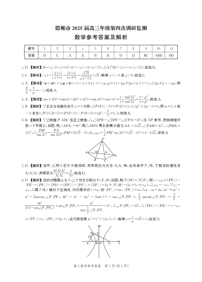 河北省邯郸市2024-2025学年下学期高三第四次调研监测数学答案