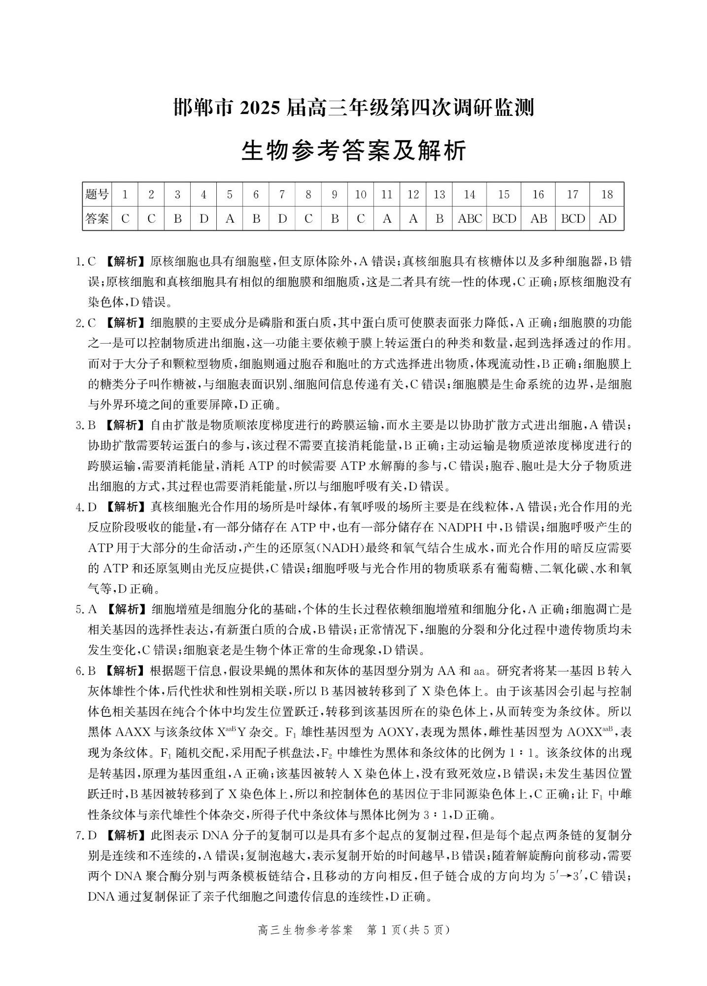 河北省邯郸市2024-2025学年下学期高三第四次调研监测生物答案