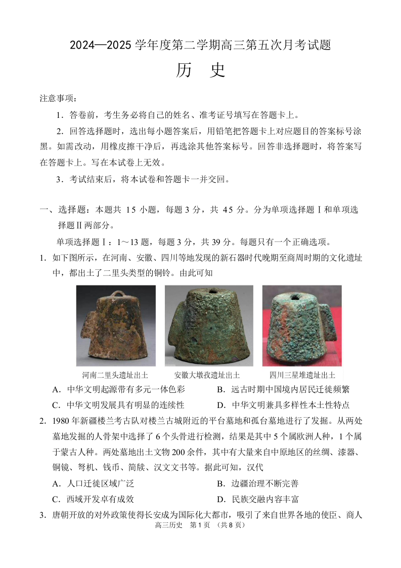 海南省文昌中学2024-2025学年下学期4月高三第五次月考历史