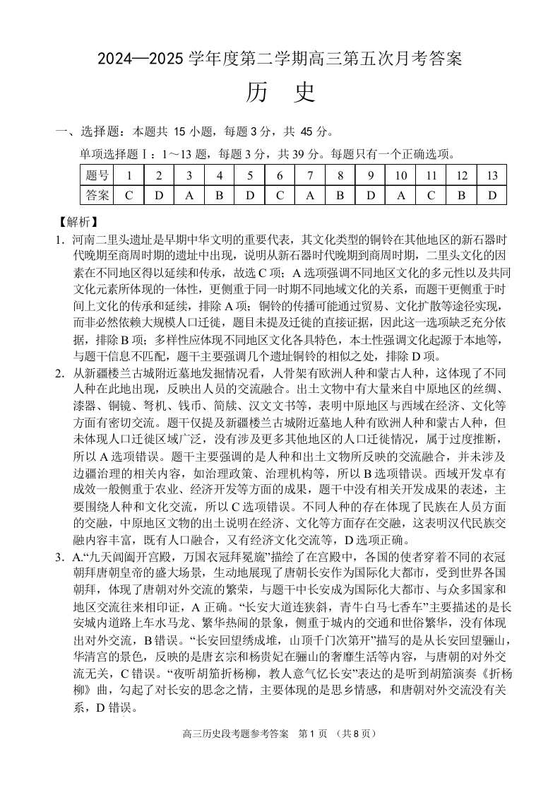 海南省文昌中学2024-2025学年下学期4月高三第五次月考历史答案