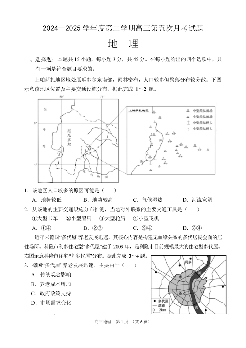海南省文昌中学2024-2025学年下学期4月高三第五次月考地理