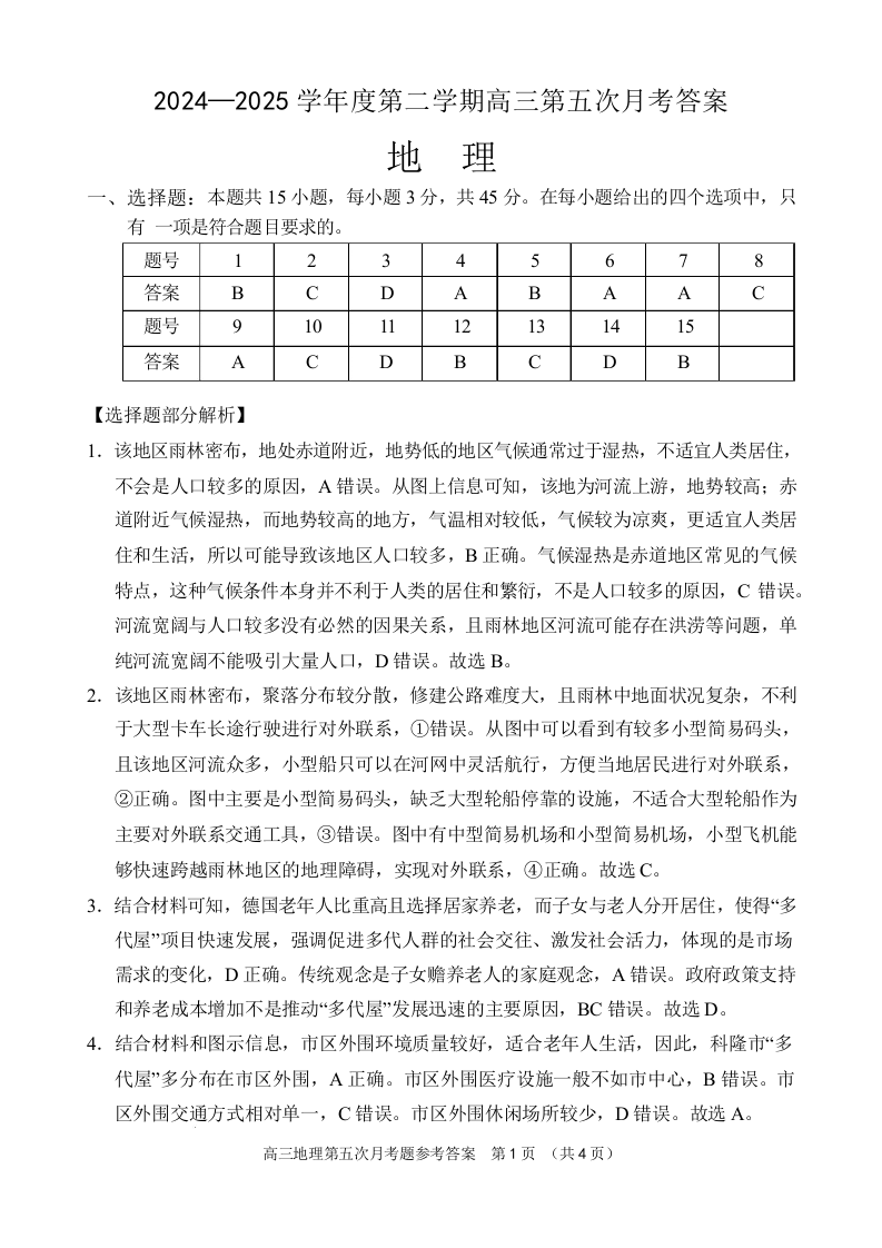 海南省文昌中学2024-2025学年下学期4月高三第五次月考地理答案