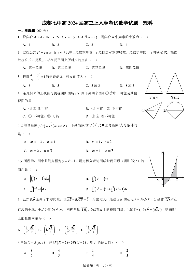 四川省成都市第七中学2024届高三上学期入学考试理科数学