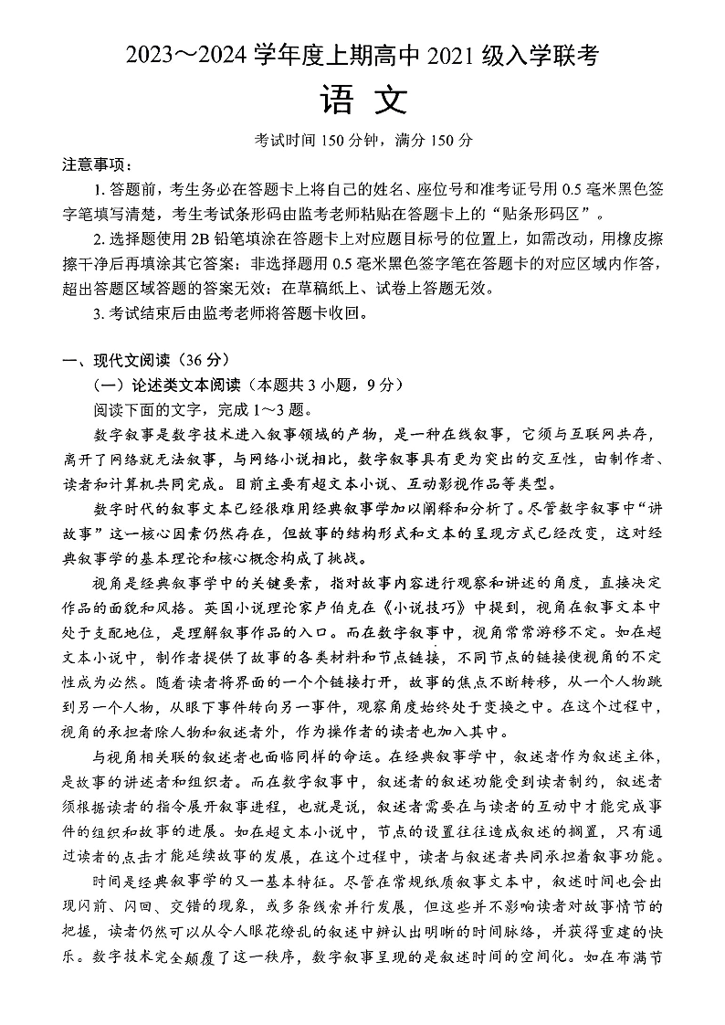 四川省成都市蓉城联盟2024届高三上学期开学考试语文