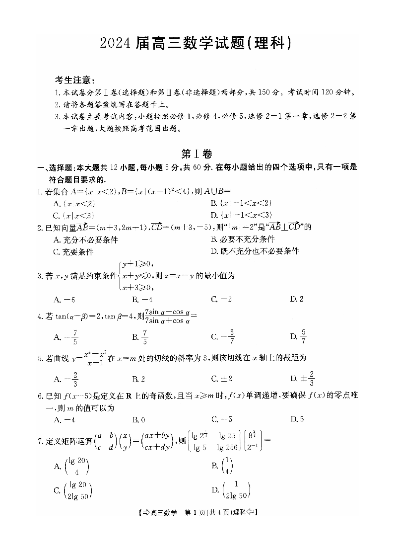 四川省八校2024届高三上学期10月联考(川贵云桂) 理科数学