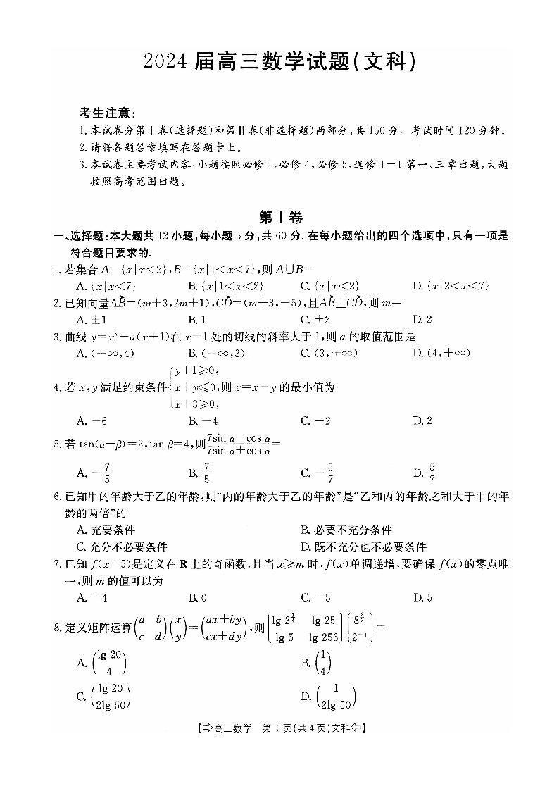 四川省八校2024届高三上学期10月联考(川贵云桂)文科数学