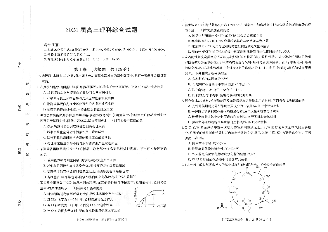 四川省八校2024届高三上学期10月联考(川贵云桂)理综