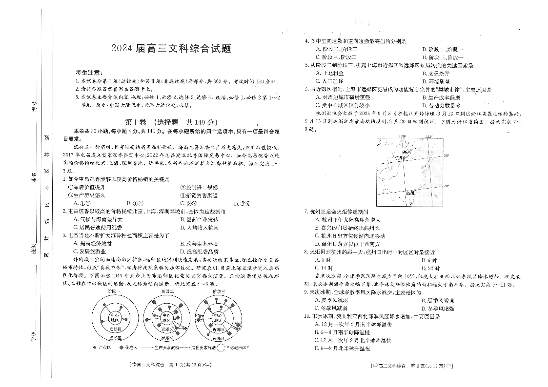 四川省八校2024届高三上学期10月联考(川贵云桂)文综