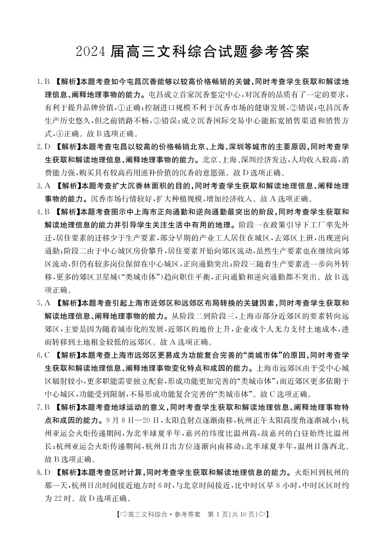 四川省八校2024届高三上学期10月联考(川贵云桂)文综答案