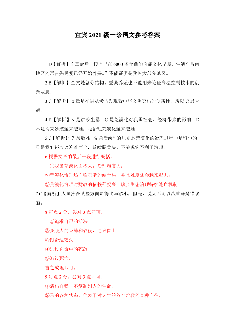 四川省宜宾市2024届高三上学期第一次诊断性测试语文答案