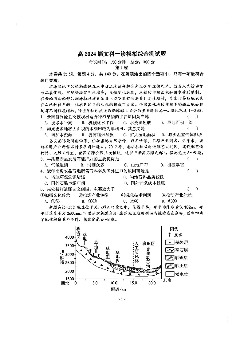 四川省成都市第七中学2024届高三上学期一诊模拟考试文综