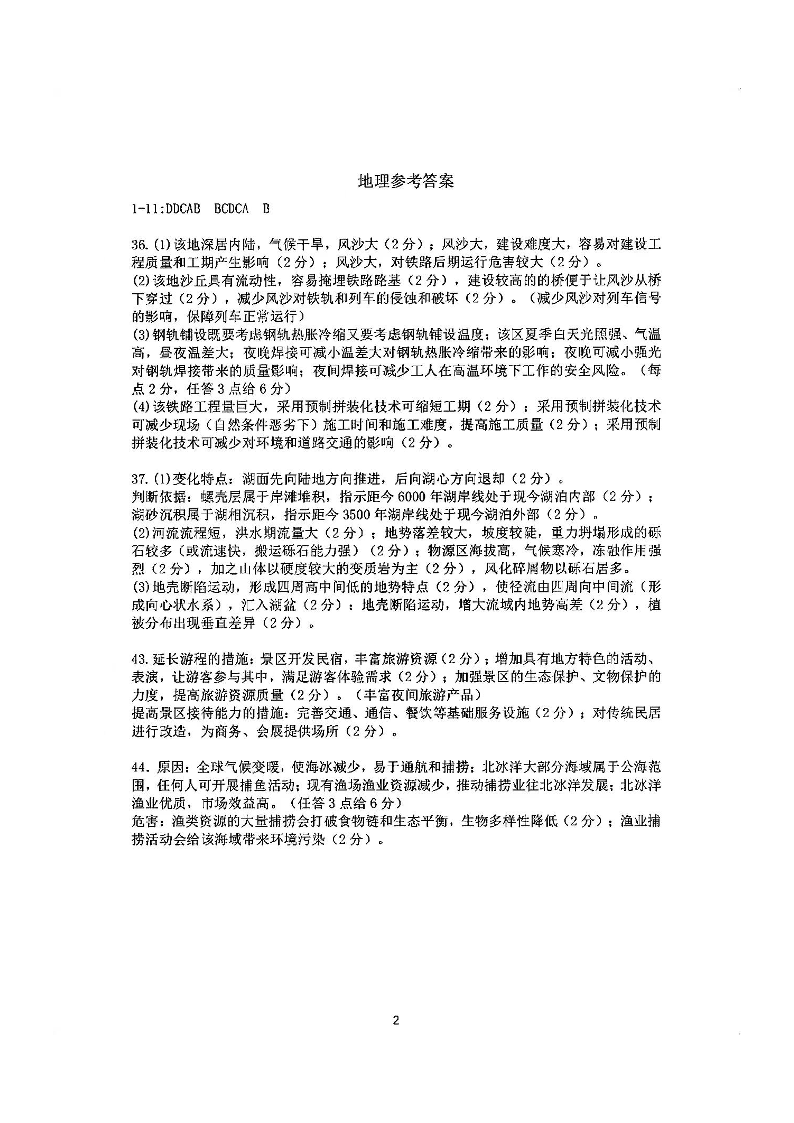 四川省成都市第七中学2024届高三上学期一诊模拟考试文综答案
