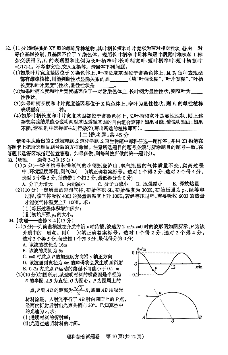 四川省凉山彝族自治州2024届高三第一次诊断性检理综2